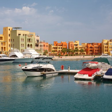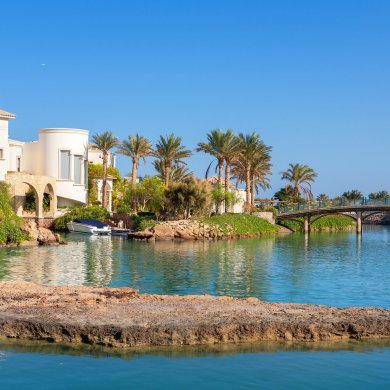 Эль-Гуна — уникальный курорт Египта. Все здешние отели выстроены на маленьких островах, соединенных между собой каналами. По каналам курсируют катера и лодки, которые в Эль-Гуне выполняют основную транспортную роль. Ведь воды в этом удивительном месте куда больше, нежели суши.