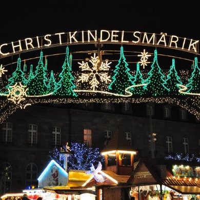 Но есть в городе и другая его не менее популярная часть — центр, который целиком признан ЮНЕСКО как объект мирового исторического наследия. Находится он на острове реки Иль, которая пересекает город. Огорожен район «Крытыми мостами» — оборонительными сооружениями со смотровыми башнями. Центральное место на острове занимает площадь Клебера, где стоит памятник генералу и полководцу Жану-Батисту Клеберу, в честь которого она и была названа. Кстати, под памятником захоронены останки героя.
