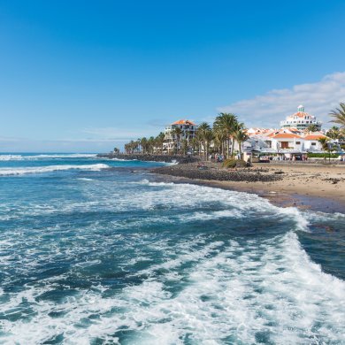 На курорте 8 пляжей c чёрным вулканическим песком. Все они оборудованы волнорезами, которые позволяют купаться в океане круглогодично. Вход на любой пляж свободный, а вот за аренду зонта или лежака нужно будет заплатить. Если вы хотите отправиться на морскую прогулку на яхте, катере или катамаране или попробовать свои силы в глубоководной рыбалке, приходите в порт Пуэрто Колон.